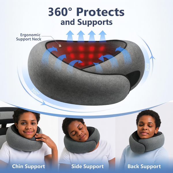 360° Ergonomic Support: Unlike fixed U-shapes, our adjustable design custom-fits from jaw to shoulder, while a granular raised neck panel delivers targeted cervical support to help reduce stiffness and strain.